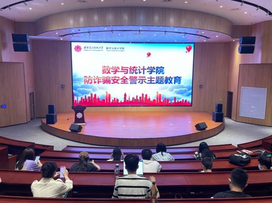 (通讯员 吕佳敏)为提升同学们的反诈骗意识,保护个人财产安全,增强防诈防骗能力,促进和谐安全校园建设。永利集团88304邀请西安市公安局高新分局王冬警官以及其他4位民警为同学们开展防诈骗安全警示主题教育讲座。学院团委书记、本科生辅导员靳志伟及80余名本科生、研究生参加活动。