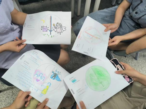 在激烈的一圈交流过后,同学们进入到了曼陀罗的压力绘画阶段,在这阶段每个同学可以任意地发挥想象,进行绘画着色,该绘画可以帮助人们放松紧绷的神经系统,减少负面情绪的影响,并培养内心的平静和坚定。吴雅晞同学分享了她的绘画,她说:“天使就象征着我们生活中的美好事物,小恶魔象征的我们生活中的压力,但即使是压力也会有它的可爱之处,我们会从压力中增强自己抵御困难的勇气,天使会打败恶魔,而在我们生活中,只要我们勇敢面对压力,困难也终究会被克服,迎接我们的将是一片光明的未来”。