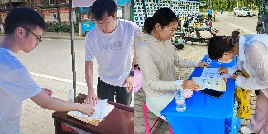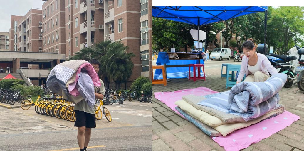 6月21日早上8:30,支部党员同志们就已经开始了外场布置和捐赠流程梳理,此次捐赠活动分设两个外场,分别是丁香14号楼对面志愿服务点和海棠路口志愿服务点。活动期间,共有30余名党员志愿者参与,他们在烈日下坚守岗位,热情地接收毕业生们的捐赠,并细心整理物品。
