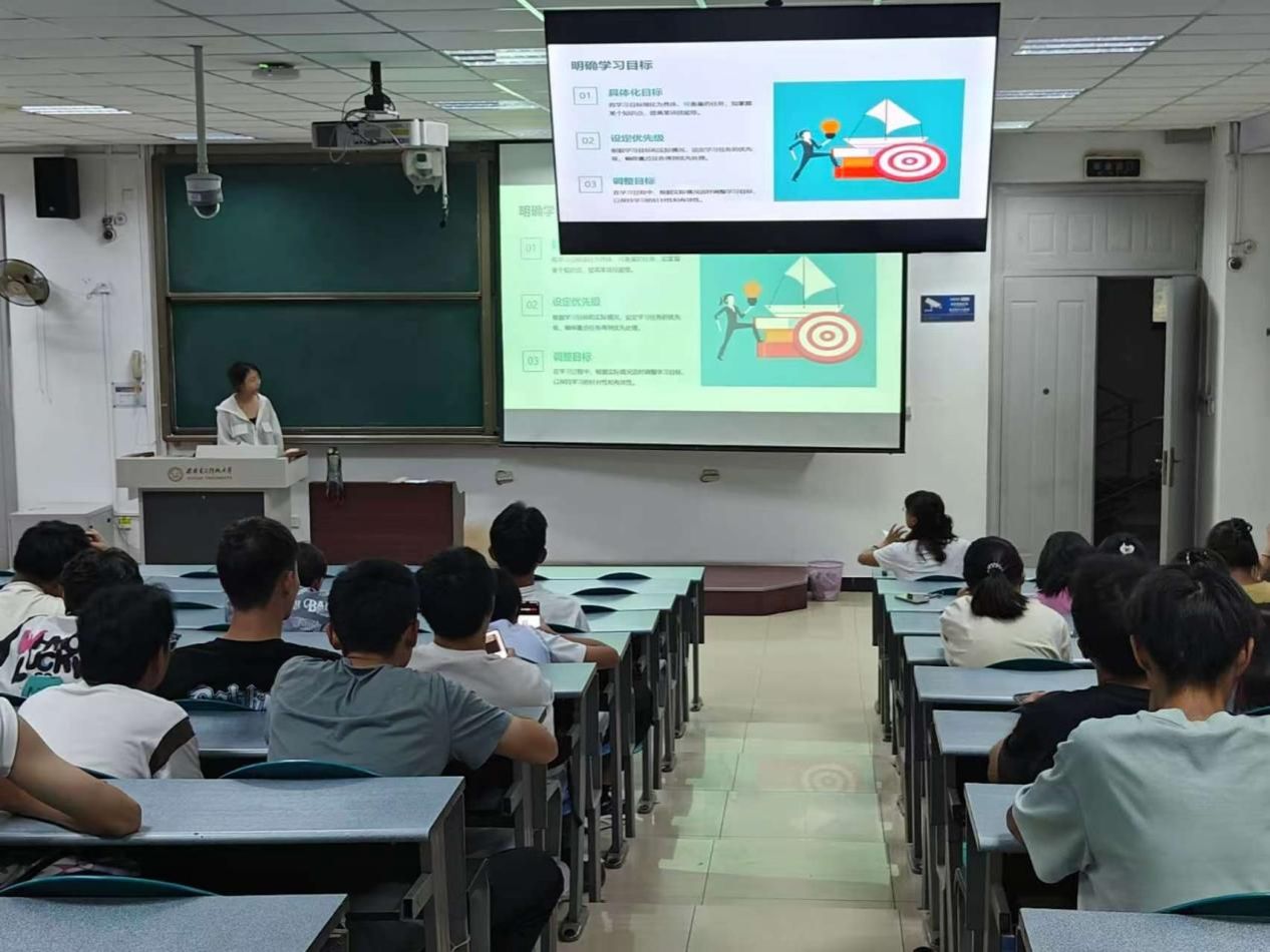 满秋磊同学分享了他在学习过程中的四大法宝:重视课堂学习、课后复习与练习、拓展学习渠道和保持良好学习心态。他详细介绍了如何认真做笔记、积极提问、建立错题本等实用学习方法。此外,他还倡导大家阅读数学书籍,利用在线资源如慕课、B站等,培养同学们合理使用工具和外界资源的能力,为大家的学习之路提供了新的启示;韩亚轩同学分享了自己的学习心得,她强调了明确学习目标、合理利用学习资源、定时专注学习法、学会自主思考与总结等良好学习习惯的重要性,她还分享了高效记忆与复习技巧,如联想记忆法、重复记忆法及复习策略,使同学们在记忆方面有了新的认识。2021级同学王奕为大家带来了竞赛准备的宝贵经验。他详细讲述了数学建模竞赛、全国大学生数学竞赛、密码数学挑战赛等赛事的准备方法,尤其对数学建模竞赛进行了深入讲解。他不仅分享了听课、培训、论文写作和数据分析等方面的实用技巧,还强调了学习往届优秀论文和队友间交流合作的重要性,为同学们参加各种竞赛明确了方向。