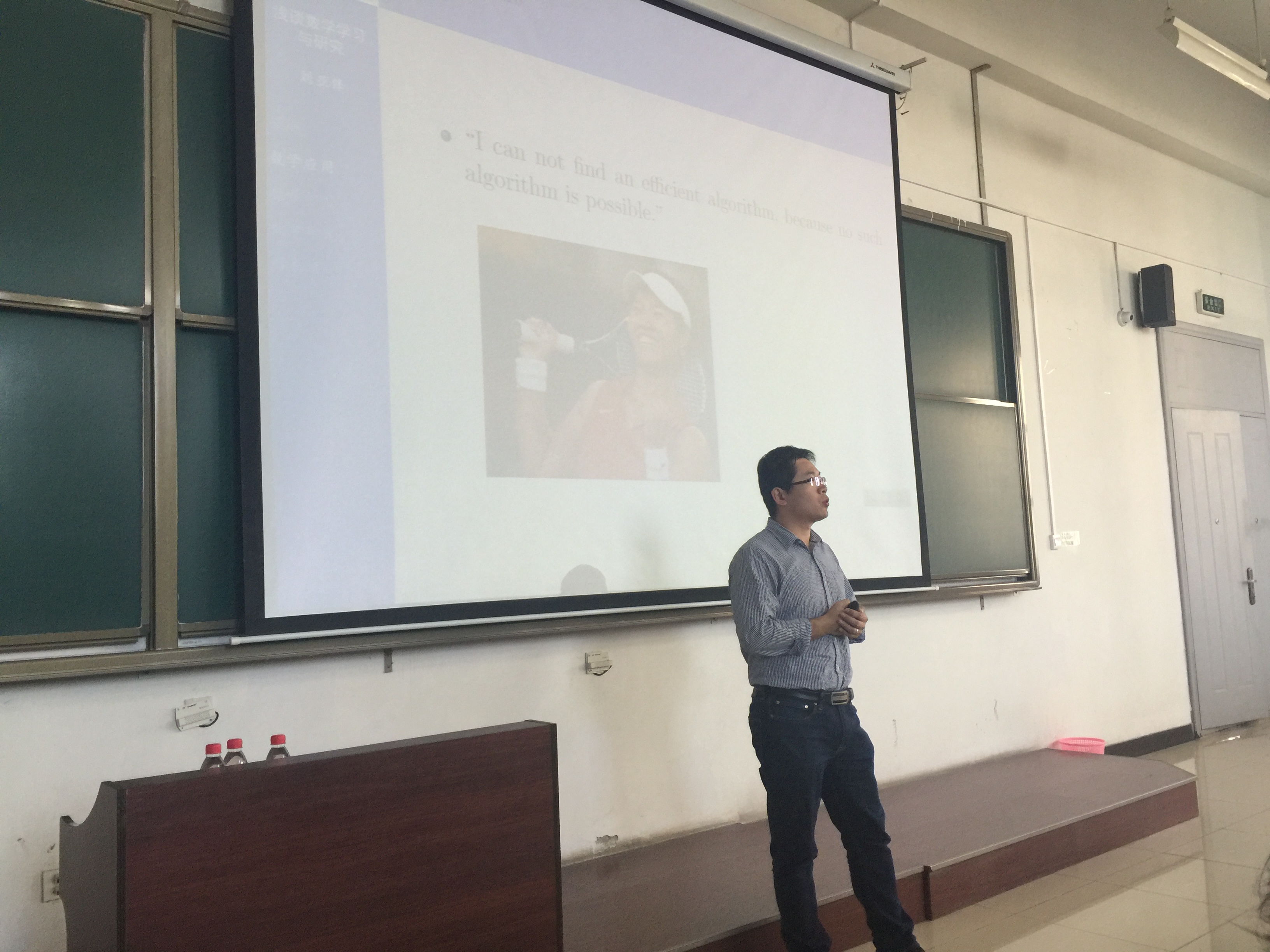 2015年10月9日下午两点半,应永利集团88304院长刘三阳教授邀请,中科院数学与系统研究所刘亚锋博士在南校区B楼433教室,为数统院师生作题为“数学学习与研究的体会”的报告。