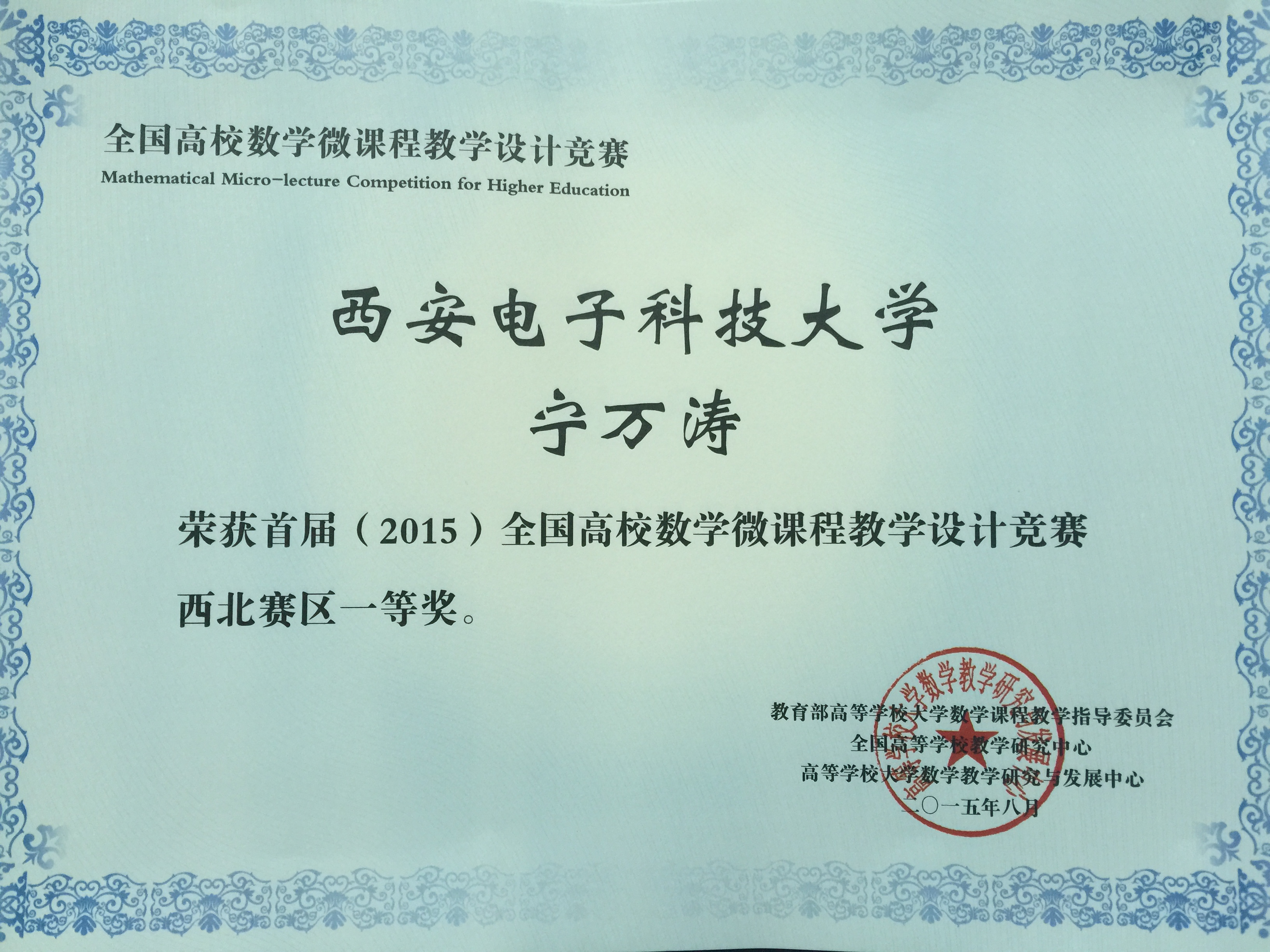 日前,首届全国高校数学微课程教学设计竞赛结果公布,永利集团88304朱佑彬老师获得西北赛区特等奖(陕西赛区7项,西北赛区10项),宁万涛、吴婷老师获得一等奖,刘丹、冯晓慧老师获得二等奖。